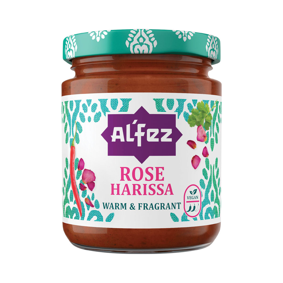 A hot chilli paste with fragrant spices and rose petals. The subtle sweetness of rose petals balances with the heat and smokiness of chillies to create a delicious depth of flavour. A versatile paste, Rose Harissa can be used as a spread for wraps and sandwiches, added to mayonnaise or yogurt for a tasty dip, for coating and marinating meats or mixed into couscous and rice for an extra kick.