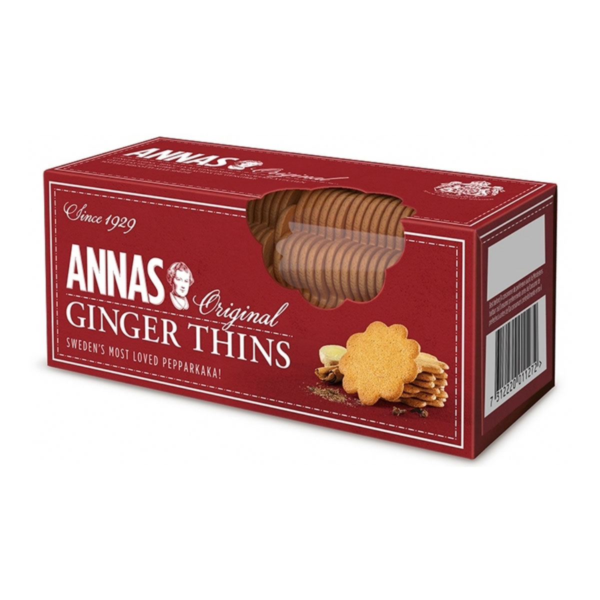 Satisfying by themselves, Anna's Thins are also a perfect pairing for cheese and fruit. They make a scrumptious crumble for a pie crust and ice cream topping. Anna's Original Ginger Thins are spiced with ginger, cinnamon and cloves.