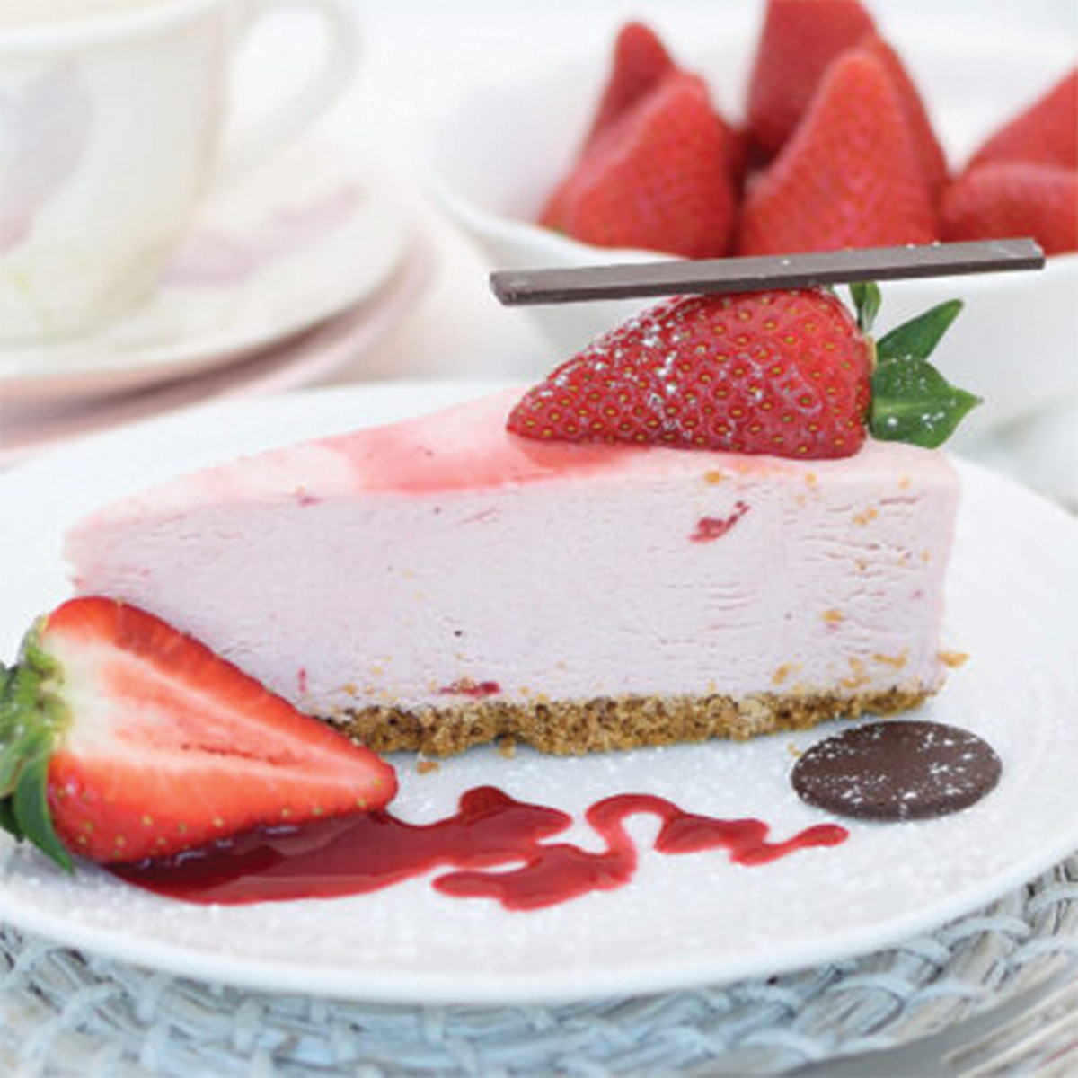 A fresh Irish cream and Coolhull cream cheese filling enriched real strawberries. Sweet and tangy with a velvety smooth and rich texture our classic strawberry cheesecake is finished with a marbled strawberry coulis glaze all smothered over a home-baked biscuit crumb base.
