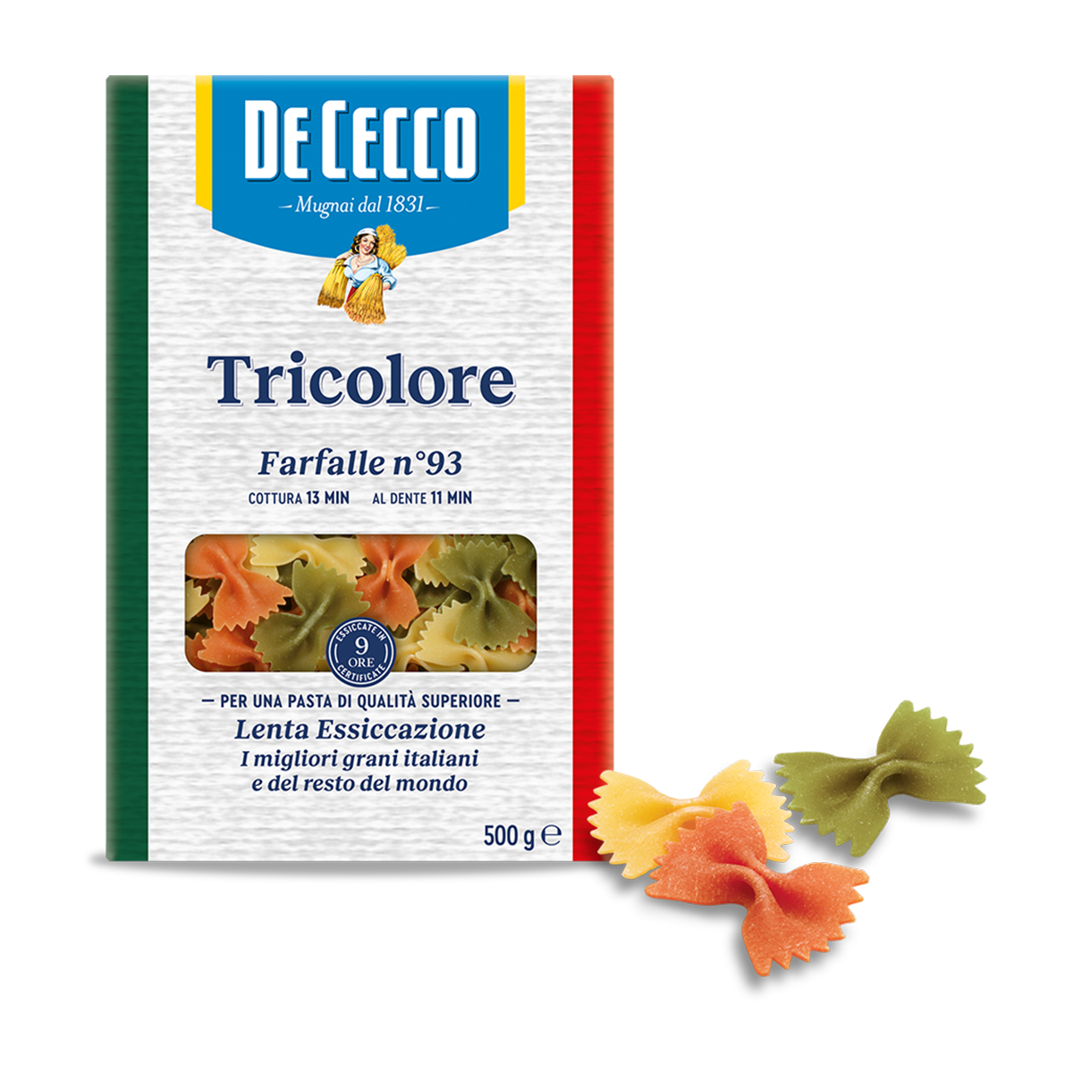 The condiments recommended for Farfalle are light sauces: sauces made from butter with peas and ham; white sauces with delicate flavours made from salmon and cream; sauces made from mild, soft cheeses with a dash of saffron or curry.