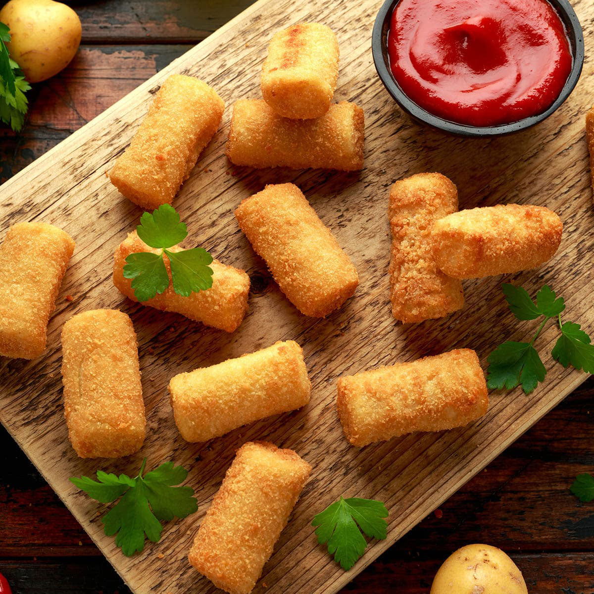 Smooth creamy mash potato with a hint of onion and nutmeg, lightly fried in a crisp golden crumb