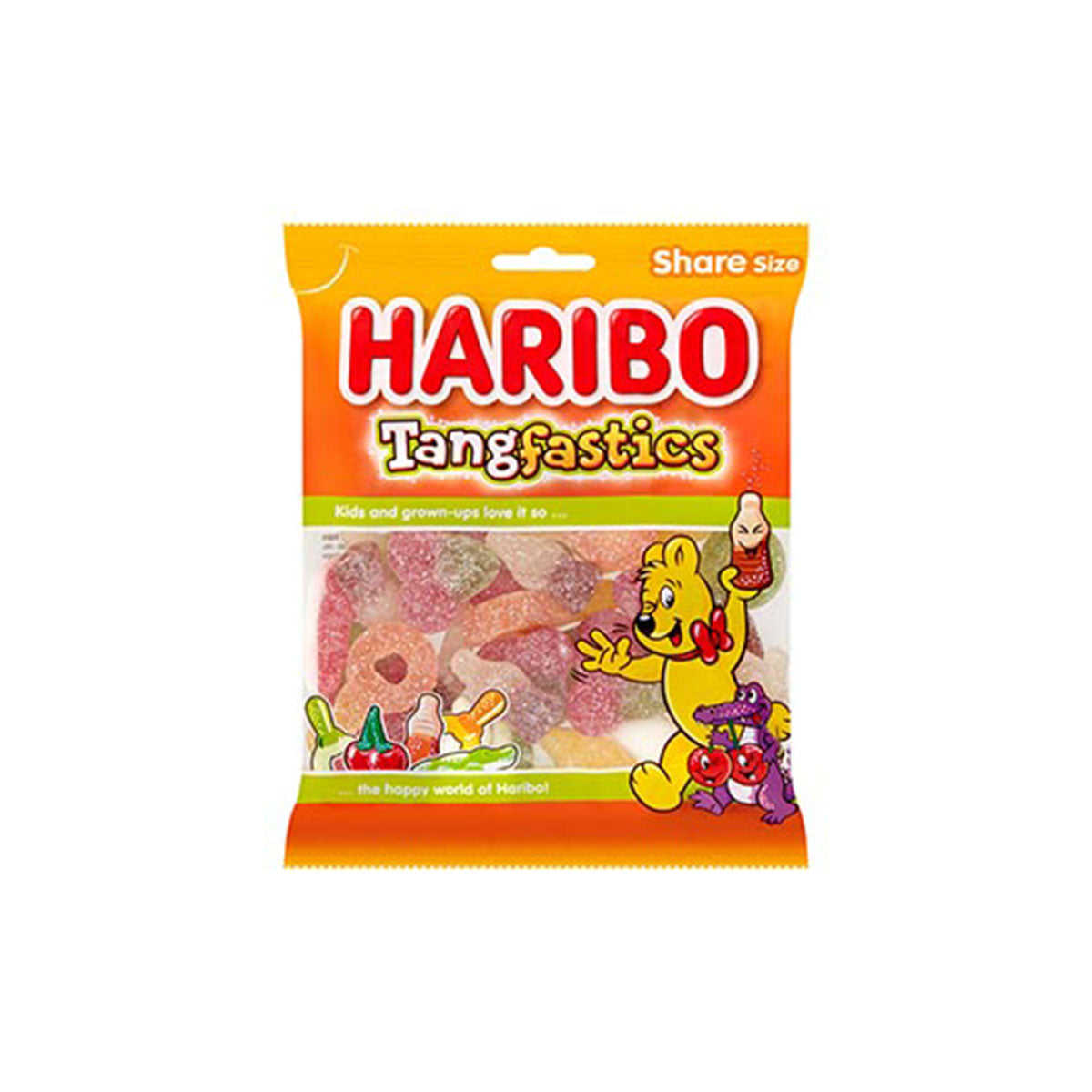 Haribo Tangfastics Bag Kids and grown-ups love it so... ...the happy world of HARIBO! Tangy tastiness Without Artificial Colours