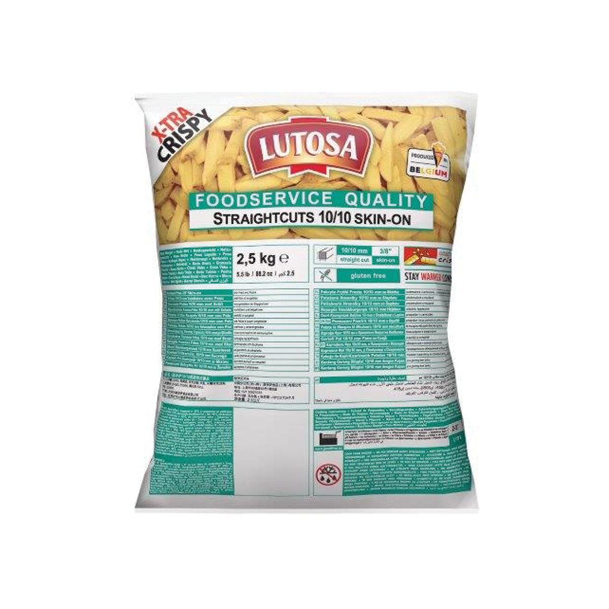 Classic cut Lutosa chips with the skin on are incredibly crispy and packed with potato taste. Chips are the ultimate side to any dish, pairing perfectly with anything from chicken to fish. With the skin being kept on, it allows for a new and unique flavour and textural experience. Suitable for vegans and vegetarians. Free from gluten and dairy.