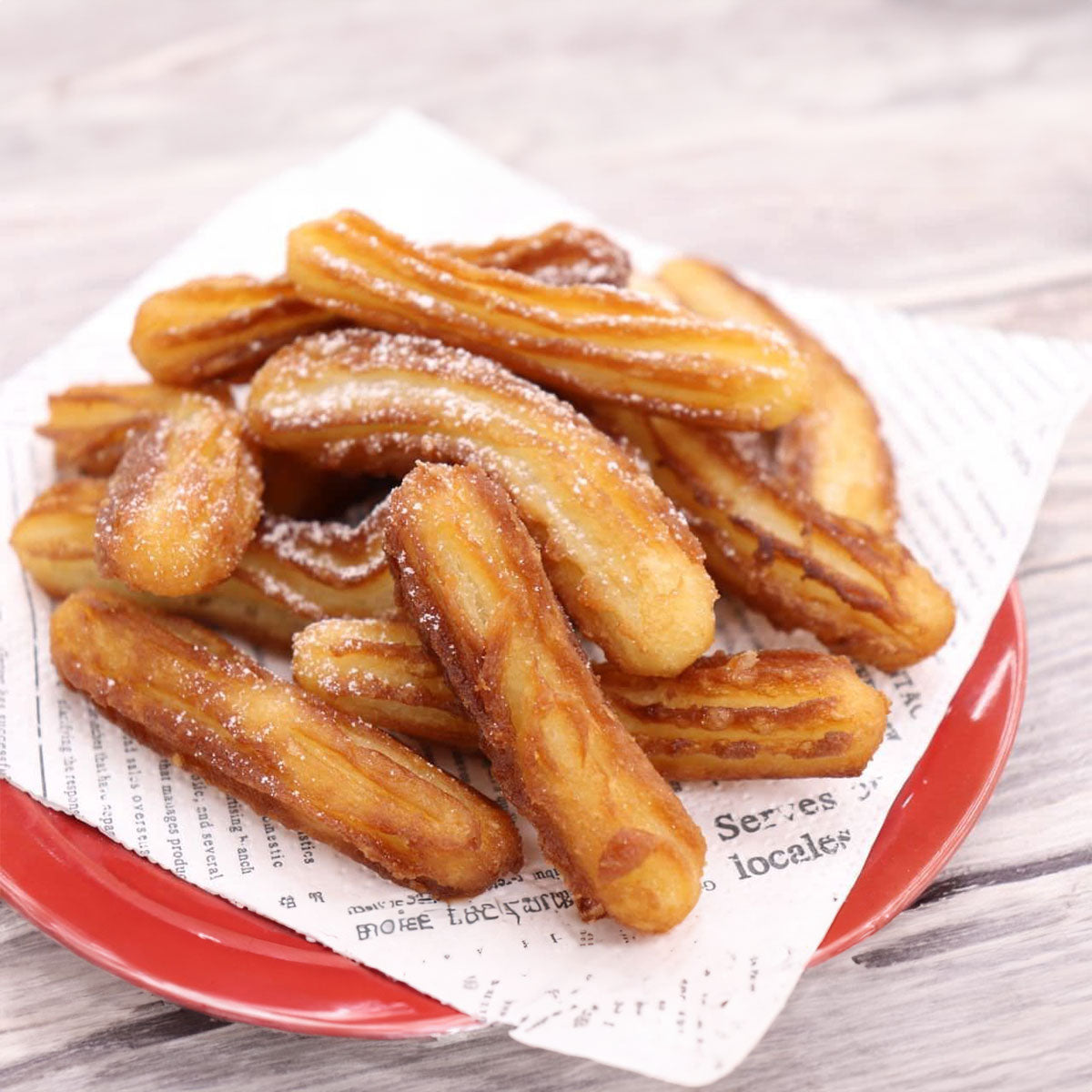 A traditional snack and dessert in Spain, Mexico and Latin America, churros are delightfully crunchy and, when dusted with sugar and dunked in dulce de leche, caramel, white and milk chocolate dipping sauces.