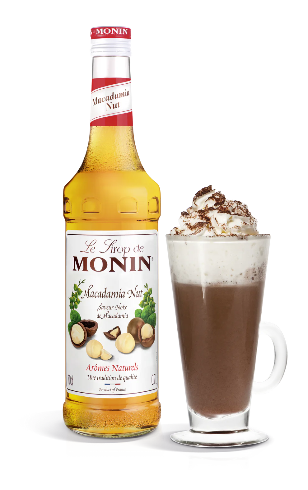 MONIN Macadamia Nut syrup’s delicate and subtle notes, reminiscent of the coconut, work really well in milk-based and alcoholic drinks. Flavour your milkshakes, hot chocolates, Old Fashioned or your Cognac based digestifs.