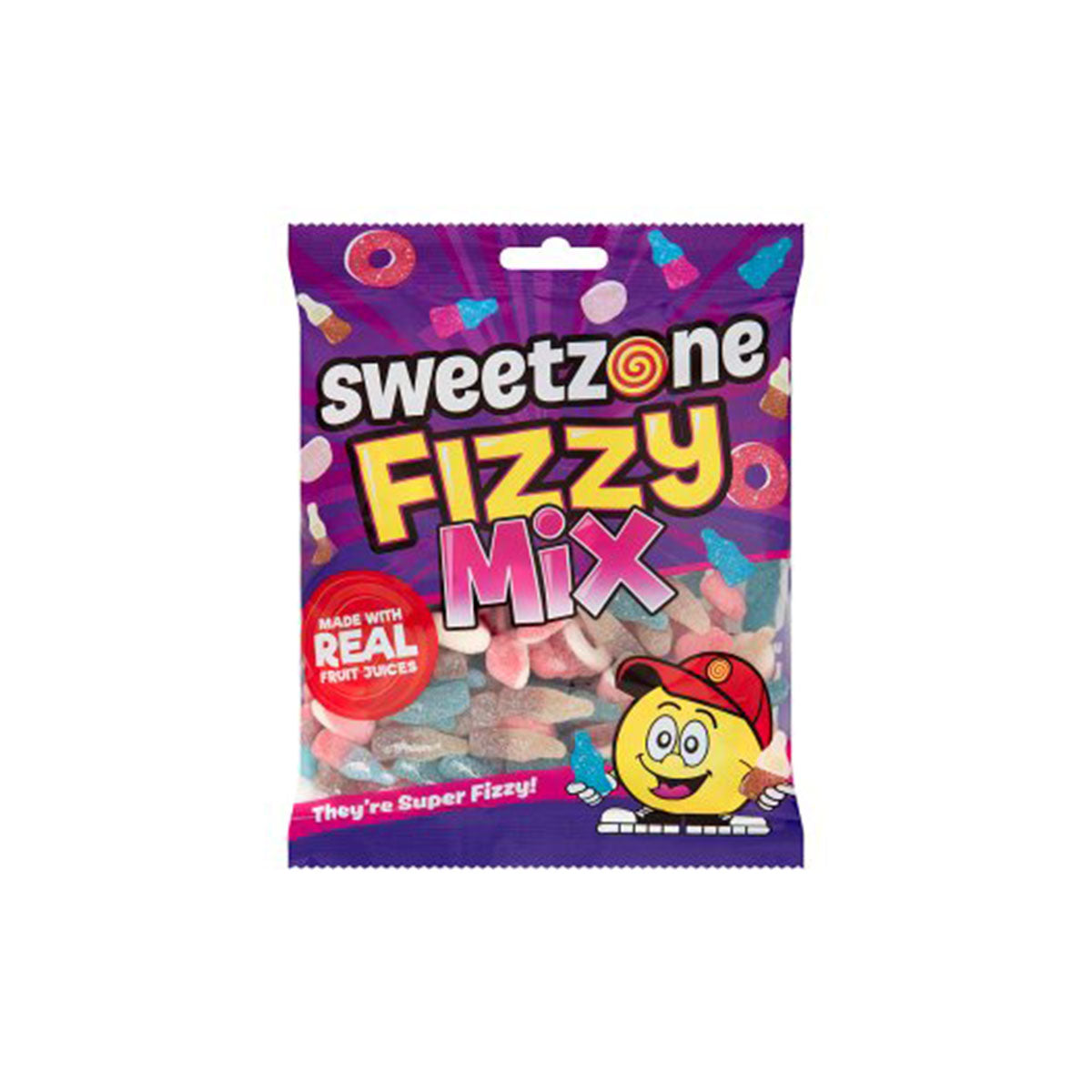 Fizzy Mix contain a fizzy mixture of Strawberry Puffs, Fizzy Blue Bottles, Fizzy Cola Bottles, Fizzy Watermelon Rings and Blue Raspberry Bottles.